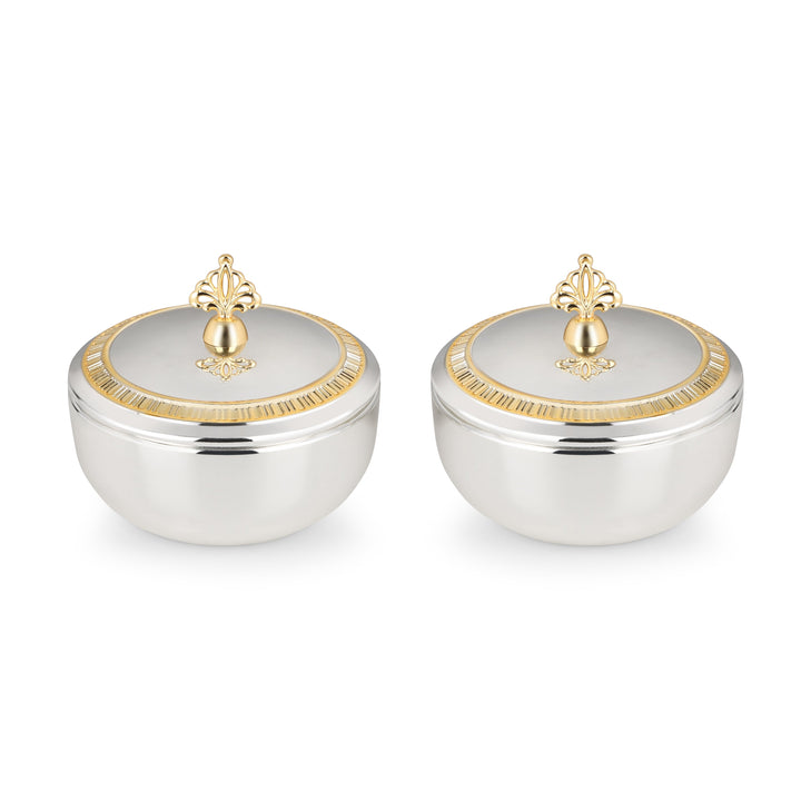 This crown bowl with lid set of 2 is crafted with care to add elegance to your home or gifting collection. Perfect for those who appreciate fine craftsmanship and timeless design.