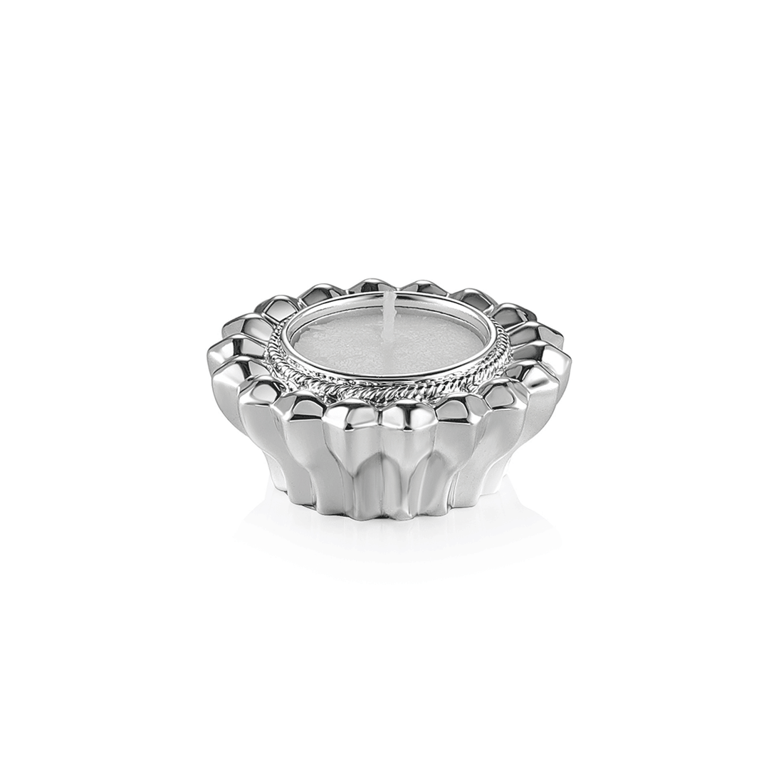Laxmi Ganesha on lotus + flower tealight- Silver