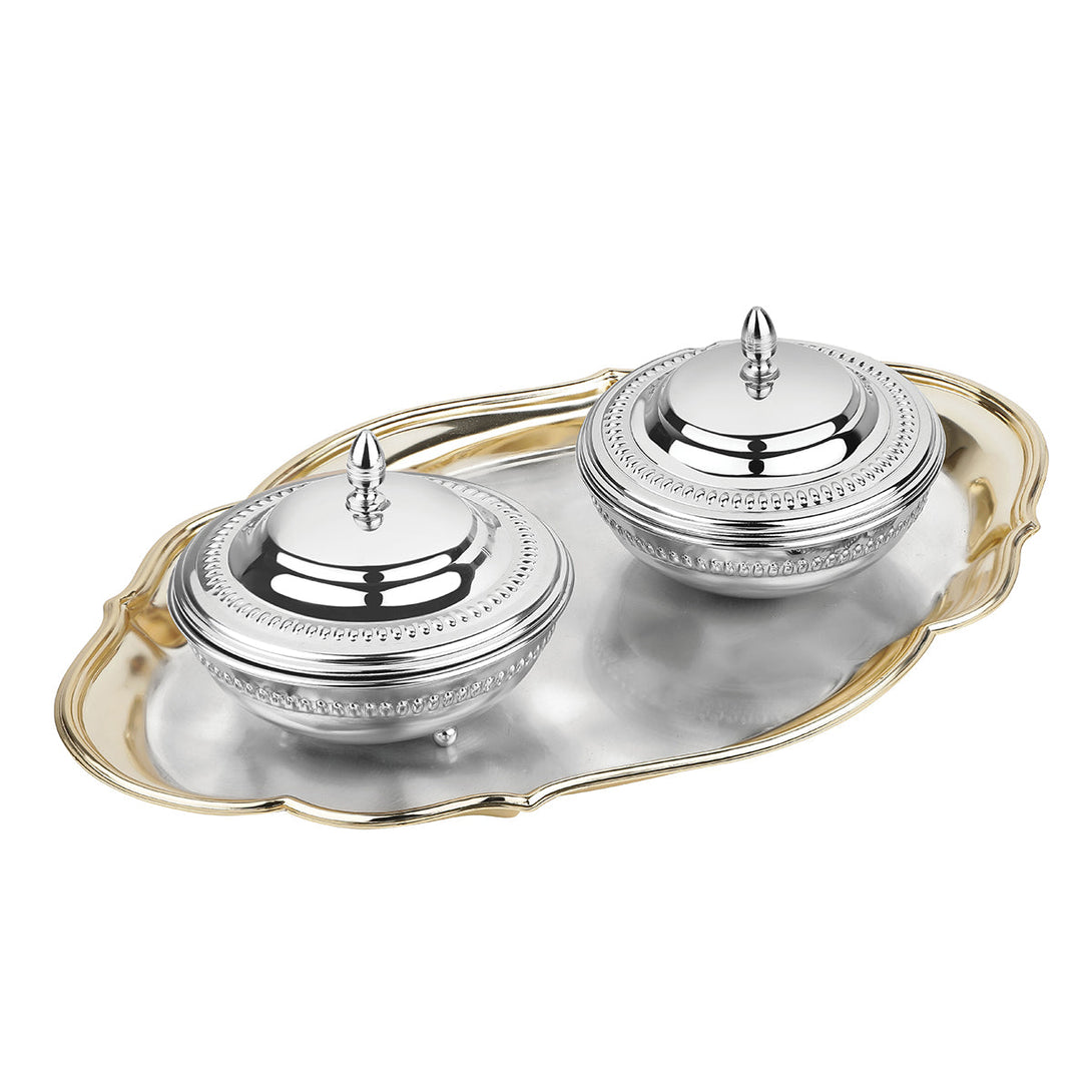 Oval Cutwork Tray (Golden) + 2 Sugar Bowl (Silver) = 9942+9948