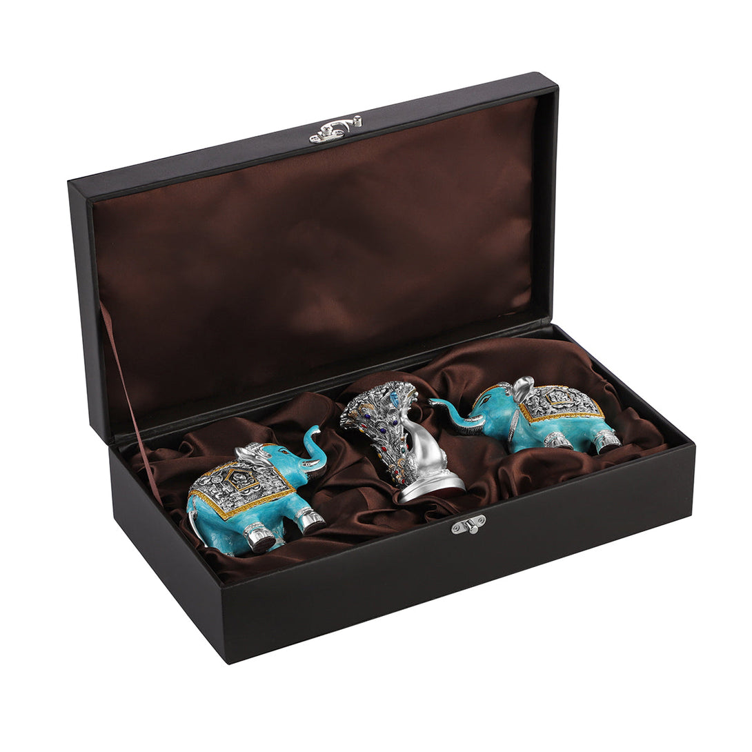 Pair of Feroza Elephant & Peacock Tea Light- Silver