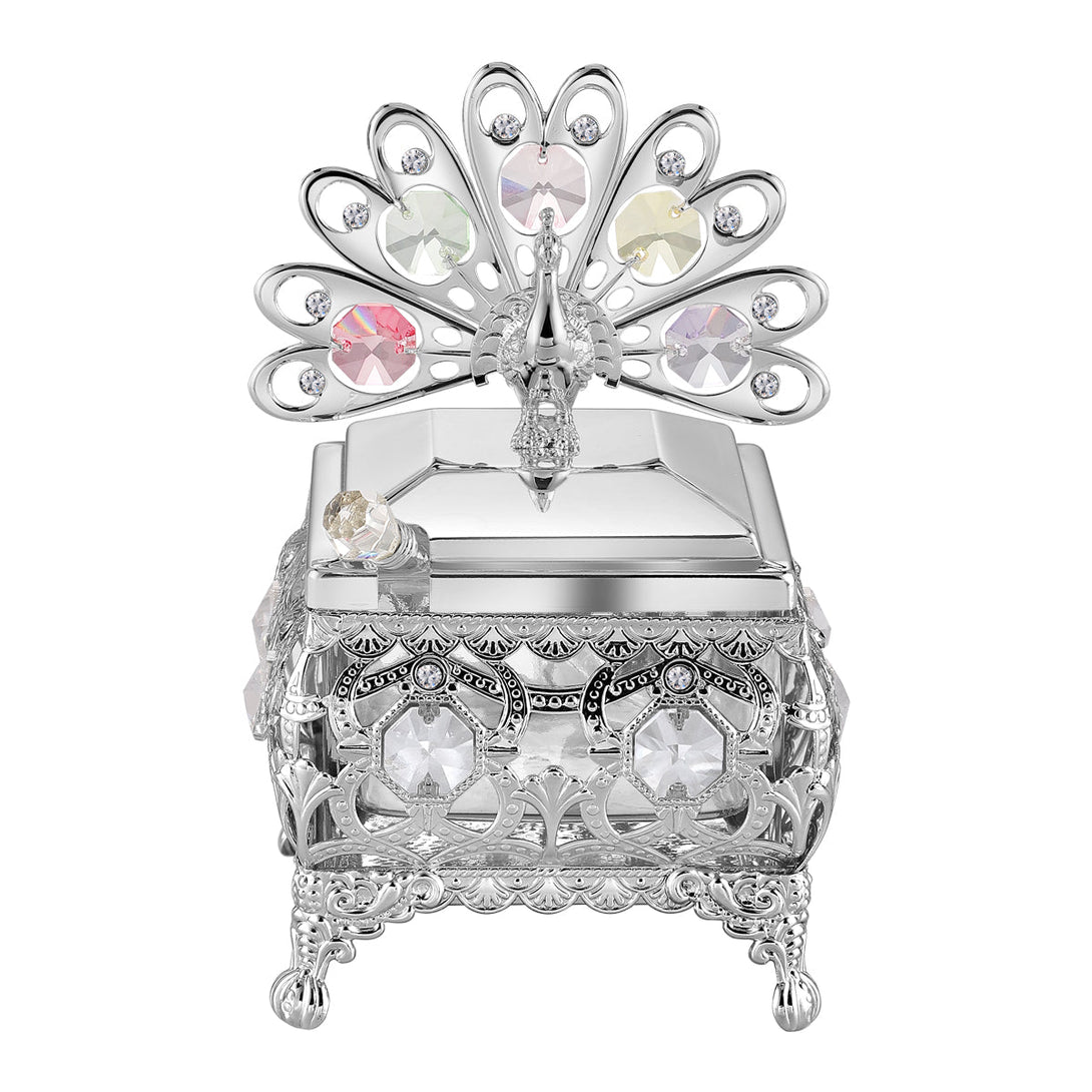 Peacock Sugar Bowl With Spoon Silver Colored Crystal