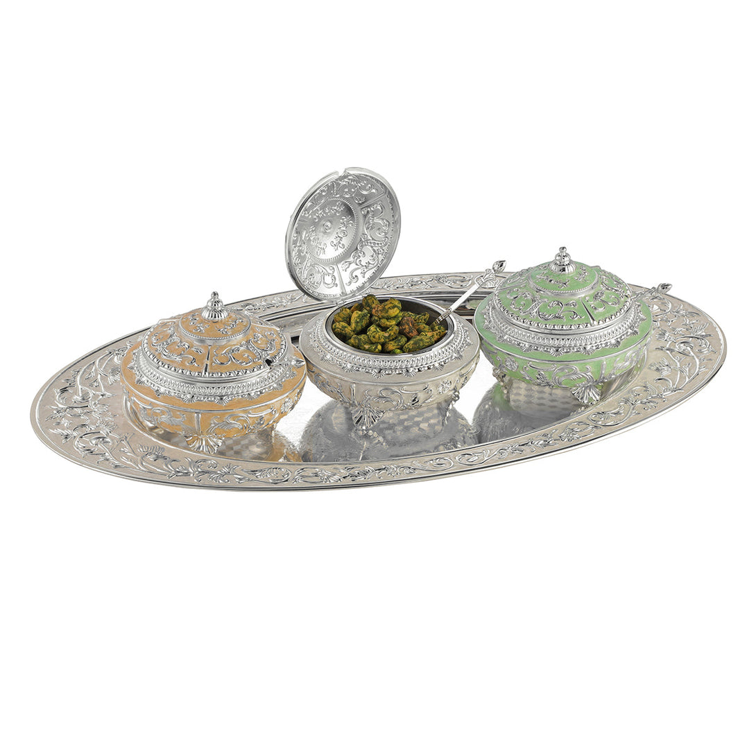 Set of 3 Sugar Pot With Oval Tray- MOP Large